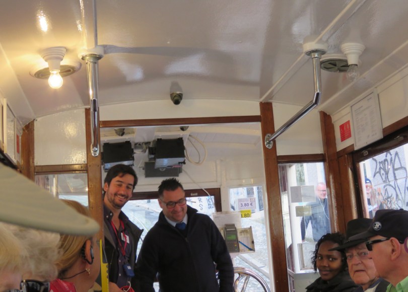 Francisco met us at 8:45am and told us that we would be doing a city walk this morning and the rest of the day is on our own. We headed down toward the city center and then rode a funicular to the Chiado district. We walked stopping once for green wine and cod cakes at a restaurant that was a former monastery. The walls were covered with tiles.