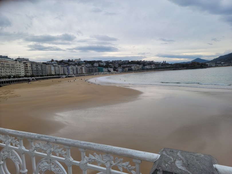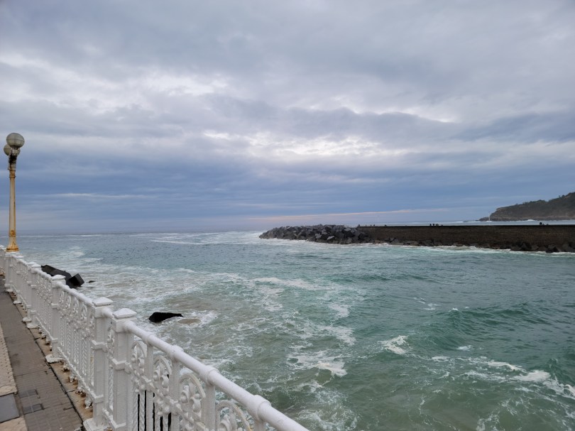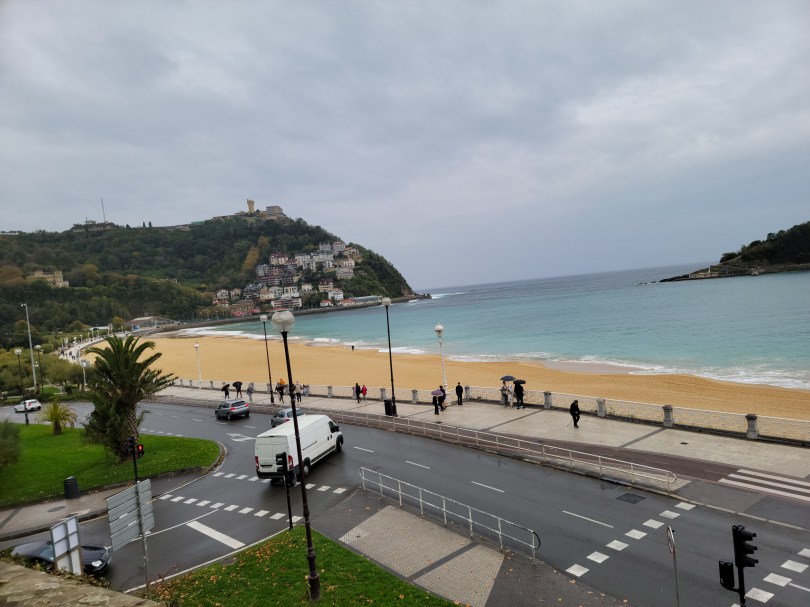 We left our hotel at 9am and headed for San Sébastien. The drive took an hour and a half. It started raining soon after we left Bilbao. Upon arrival, it was still raining but very lightly. We spent time putting up our umbrellas and then taking them down. King Alphonse 12th used San Sébastien as his summer home. First we walked up to his house. It isn’t open and the outside could use some work but it is still an impressive house.