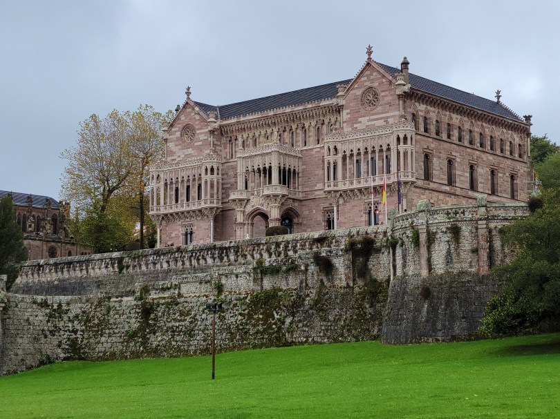 Next we walked around Santillana del Mar, a medieval town near the caves. The buildings are intermingle medieval buildings with newer ones from the 18th and 19th centuries. While here it started raining heavily so we hopped on the bus and left. We had extra time so we stopped in Comillas which has a very beautiful castle built for King Alphonse 12th. The architect was friends with Gaudi who designed some furniture inside the castle. We only saw the outside. Next door is El Caprichio, a fantastic building designed by Gaudi.