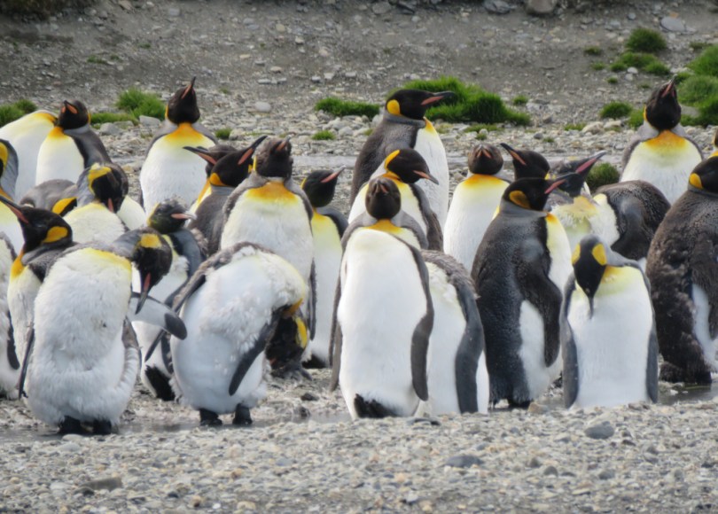All over the beach adolescent elephant seals were sleeping. 3 or 4 king penguins were hanging out. A large group of Gentoo penguins were at the water line. One or two fur sales were also on the beach.