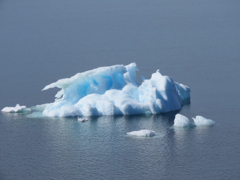 I woke at 5am with sunlight coming through a small opening between my cabin drapes. When I looked outside all I could see was water and icebergs. The ship was stopped. At 8am they made an announcement that due to the amount of ice it would take another 8 hours to reach our next scheduled stop. After checking the weather forecast, they decided to change course to avoid getting iced in. We are proceeding through the ice field at 3 knots.