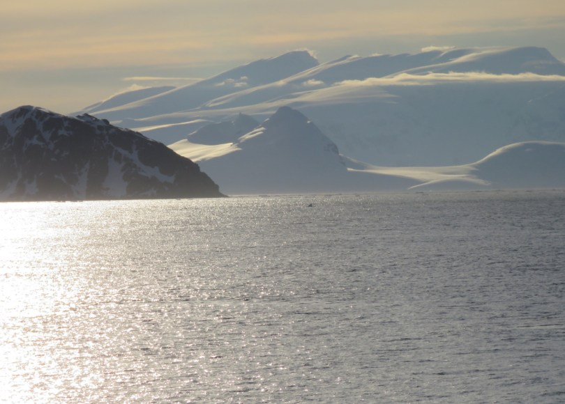 In the afternoon the zodiaks went out again for a landing. My knee was hurting a little so I skipped this. We are parked in a huge bay. It is about 40 degrees out and the ice glistens in the sunshine.