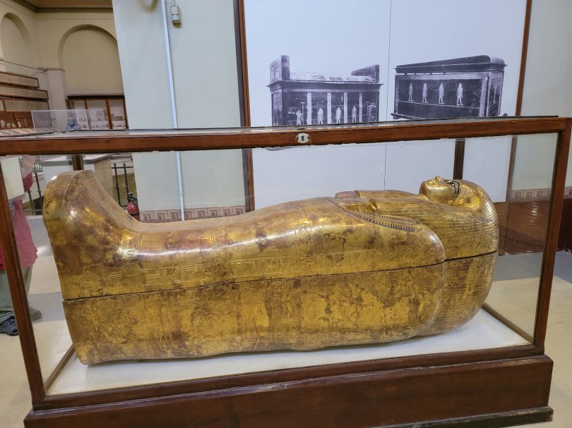 After lunch we went to the Egyptian Museum. We learned a lot about Kings of Egypt. Everything was over 3000 years old. Over 100,000 items have been moved to the new museum but there were still over 200,000 left for us to see. The colors inside one sarcophagus looked like it had just been painted recently.
