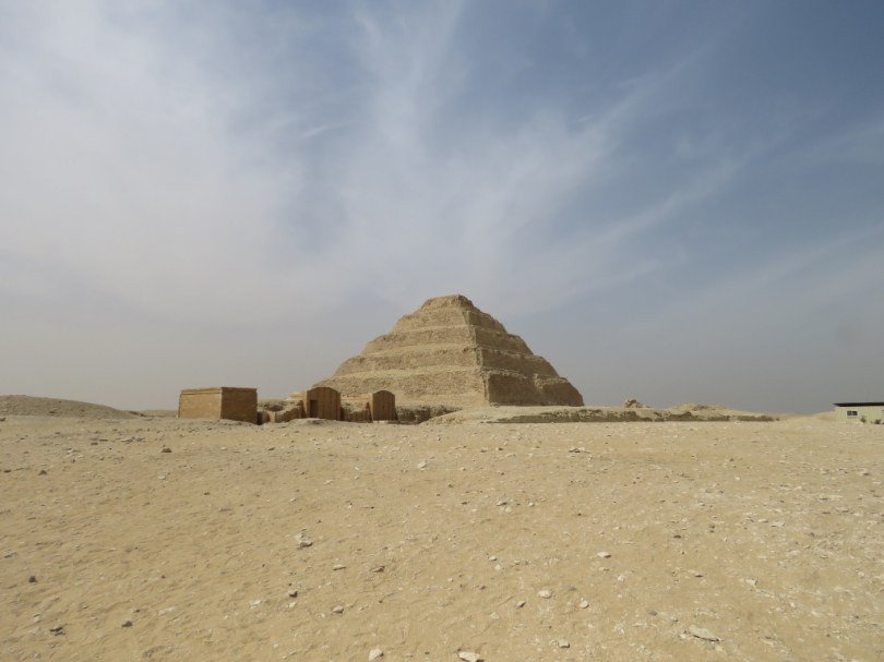 We went to a “day resort” for a buffet lunch and then continued on to the Saqqara Pyramid Complex. King Zoser had the first burial pyramid built here for himself. It is the Step Pyramid. We got to go inside and look down the deep shaft where he was buried 4800 years ago.