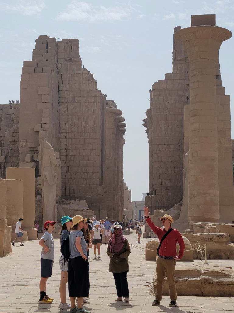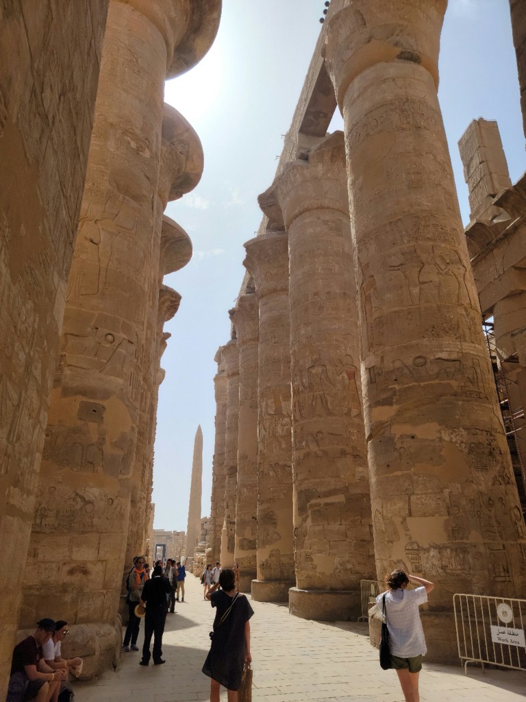 At 8:30am we went to Karnak Temple. Construction started in 2000BC. The area continued be developed for over 2000 years. The most impressive sight is the Hypostyle Hall containing 134 columns in 16 rows. Most of these are still standing.