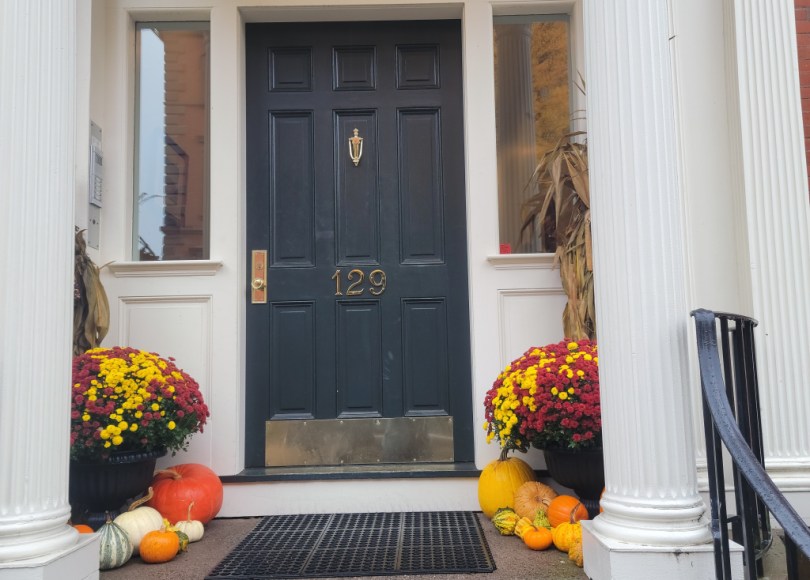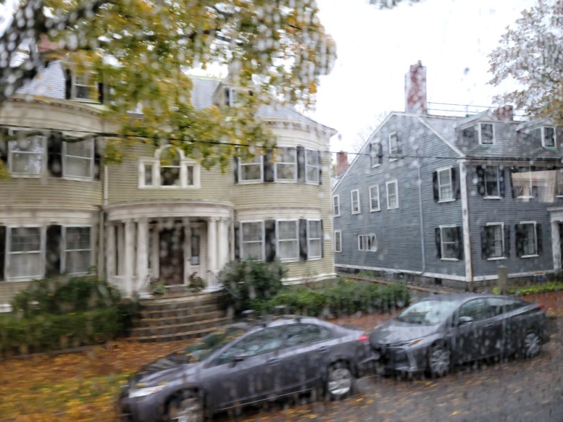 We dropped off our Salem guide and picked up a Gloucester guide and took back roads toward Glouster. By now the rain had stopped. The guide told us the peak fall leaf color was only a few days ago so we saw quite a lot of colorful trees as we rode on the bus. Along the way we saw many houses built in the 1700’s. We also saw a lot of mansions that were built as summer homes and used only 3 months a year. We had lunch in Gloucester. I had a delicious clam chowder with a burger.