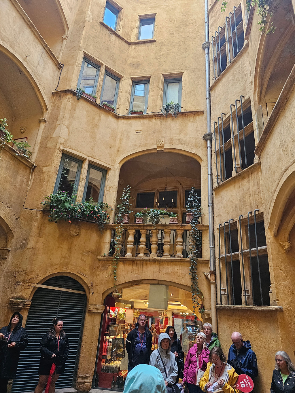 Today started with a 3 1/2 hour bus tour at 9am. We headed across the Rhone River to the Basilica de Notre Dame de Fourviever. It is high on a hill looking down on Lyon. We took a tour of the Basilica. On our way to the Basilica we saw the Roman theater where concerts are still played. Next stop was the old city portion of Lyon. Our guide took us through passageways within buildings used to get from one street to the next. Finally, we were given free time to roam before heading back for lunch.