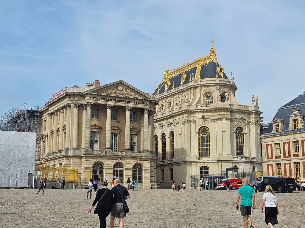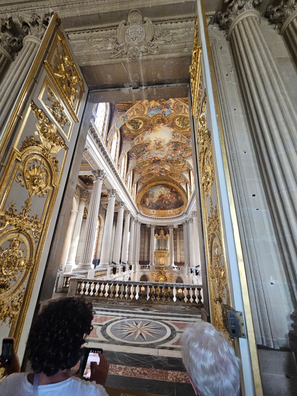 Today we all went to Versailles. We had tickets for a tour starting at 12:55pm. To make sure we made it, we decided we had to leave our apartment by 10am.  To get to the RER train was  an 18 minute walk.   It took us longer since we couldn’t find the RER station for a while.  We did find a great view of the back construction of Notre Dame.