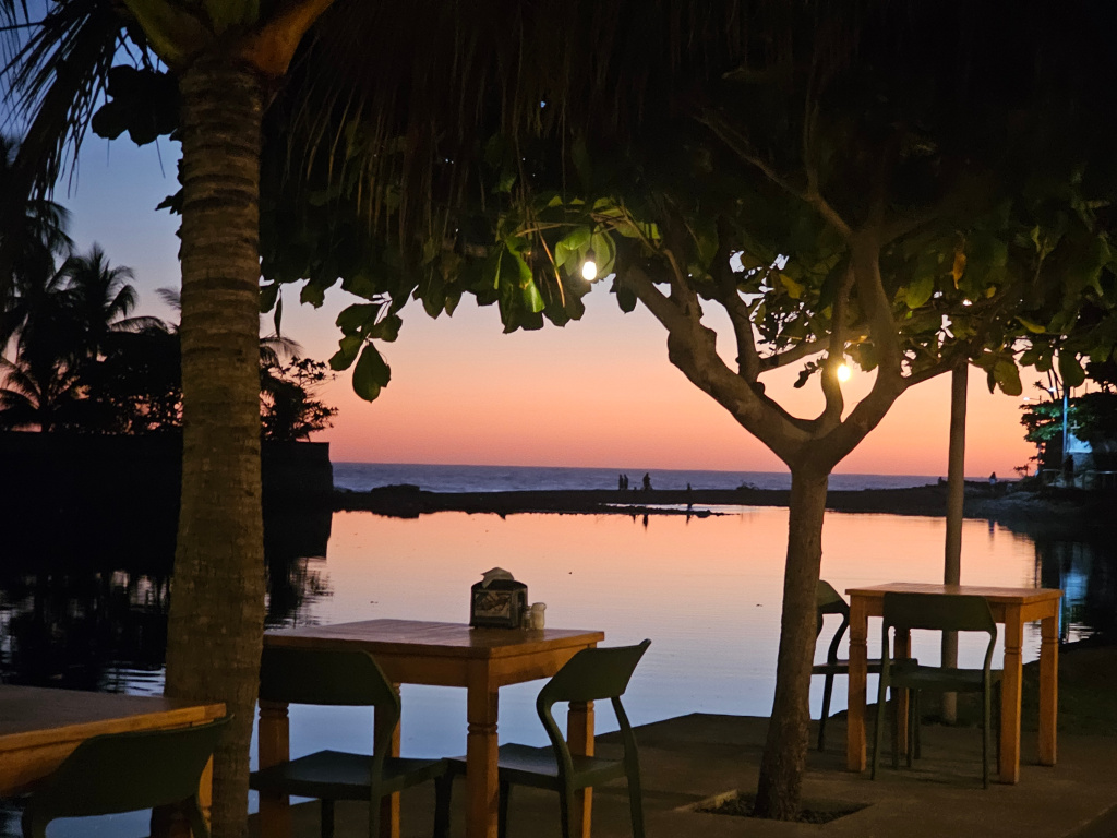 The pretrip 4 days has 8 of our final group of 15 people. We took a nice walk around town ending at the ocean to see the sunset. We enjoyed a nice seaside dinner at the hotel. WJ and Lauranne will be arriving about 9pm. I will probably be asleep by then.
