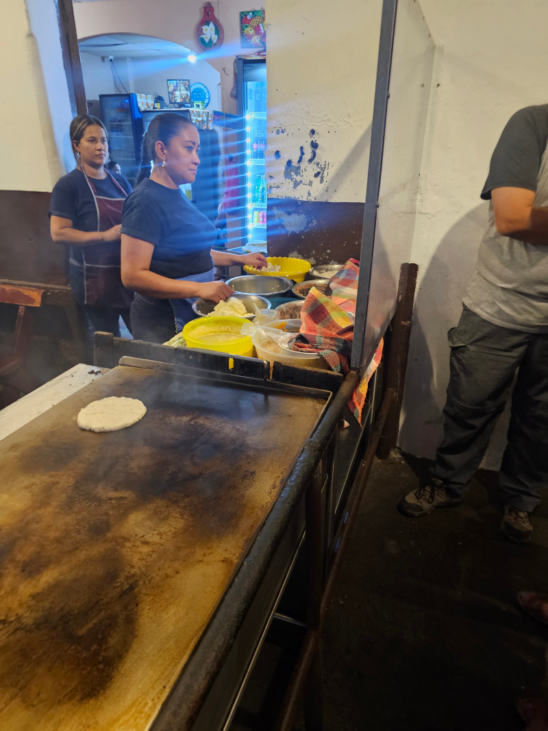We finished our walk by having Pupusas, a street food which is a corn dough filled with your choice of fillings that is flattened and fried.  I had a bean and cheese pupusa.  It was very good and very filling.