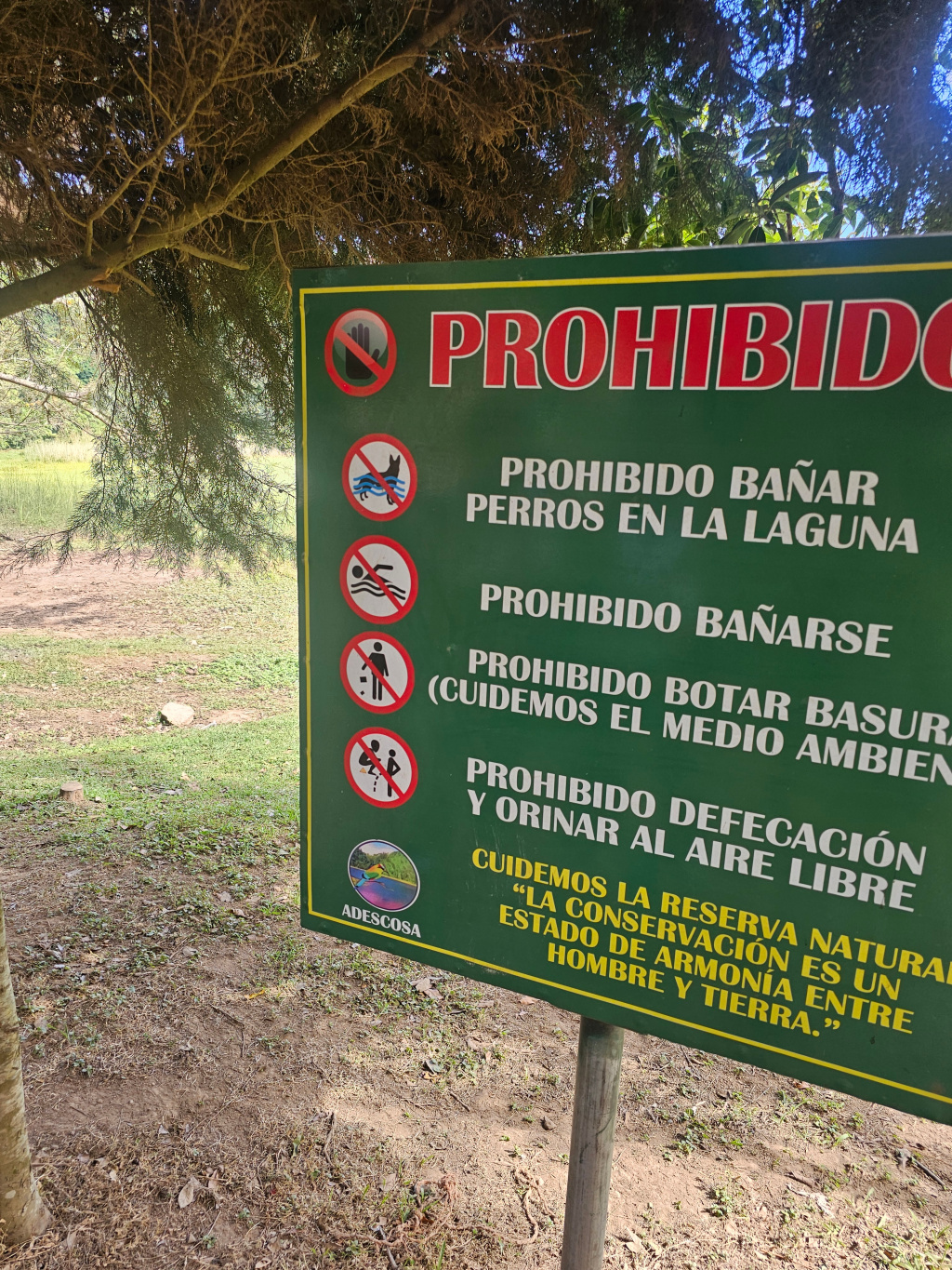 After breakfast we said goodbye to our hostess after taking a group picture with her. We drove to an extinct volcano caldera called Lago Verde (Green Lake). The hike around the lake took about an hour. It was a really nice walk. You could hear the buzz of bees the whole time but we never saw any. The lake provides drinking water for the local community and as picture shows there are many restrictions.