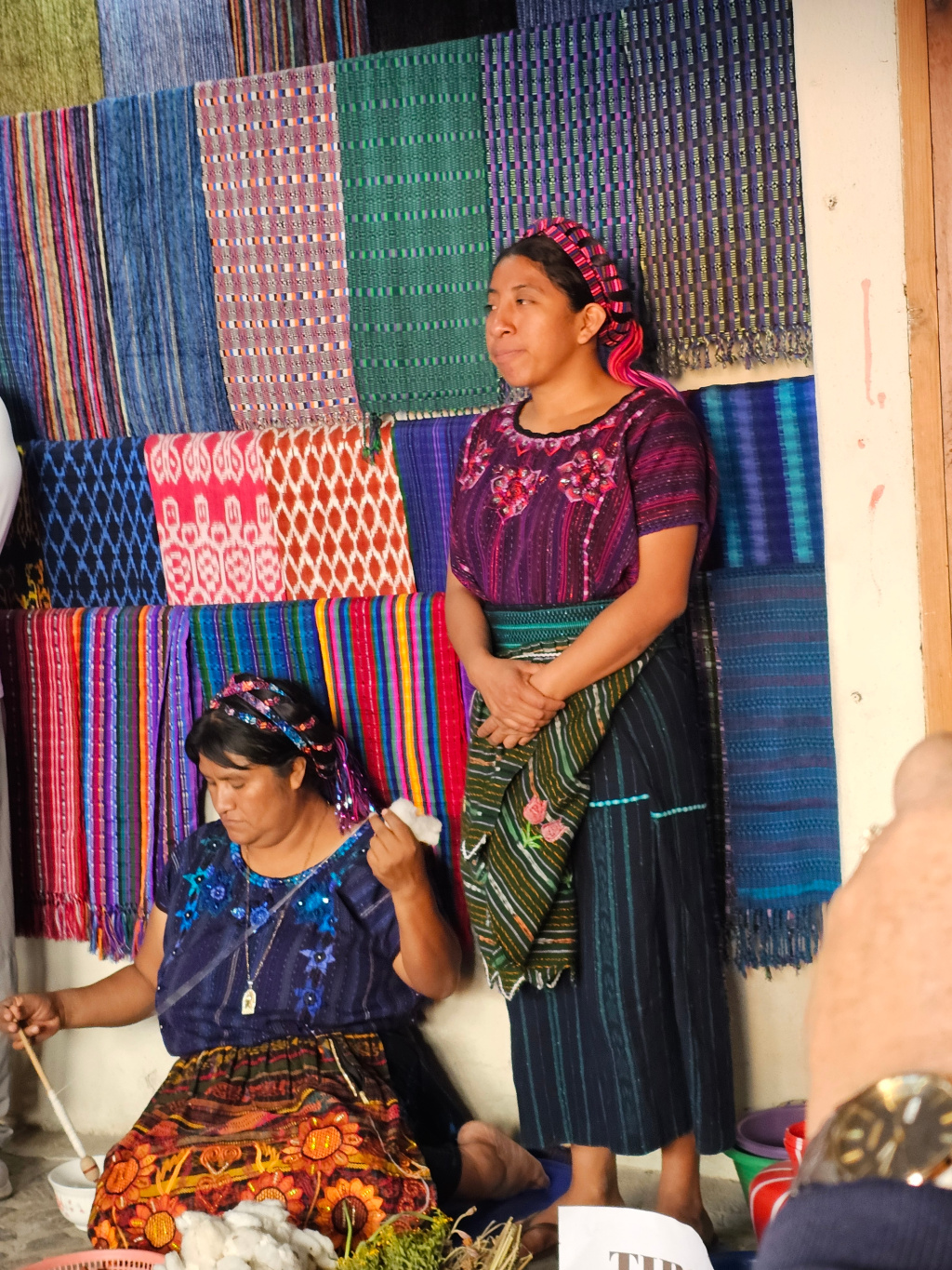 AOur first stop was a textile shop. We learned how they take the raw cotton to create the thread, how they dye the threads, and how they weave. The dyes are made from plants and insects. Some plants produce different colors depending on during which phase of the moon the leaves are cut.