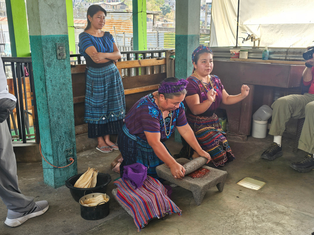 Our next visit was to the town midwife. We learned about how she became a midwife. She, also, makes natural remedies from plants to sell. This visit was in a hillside house built of concrete block walls and corrugated metal for a roof.
