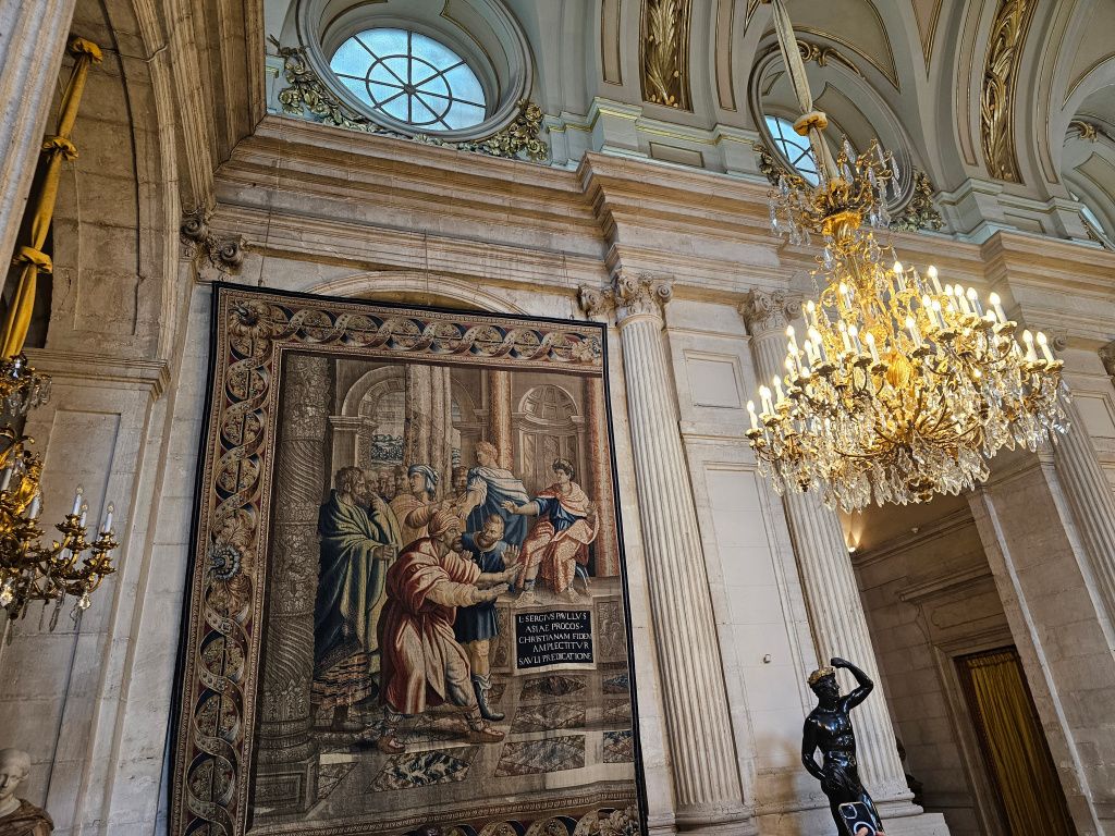 Our tour of the Royal Palace was changed to 1pm so we walked down to Mercado de San Miguel at 10am when it opened. It has many prepared food stalls and long tables with stools. Many families were drinking wine and having plates of tapas. We got some thick hot chocolate and drank that while we wandered the marketplace.
