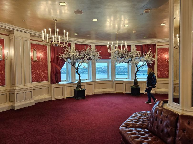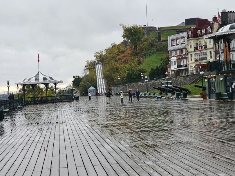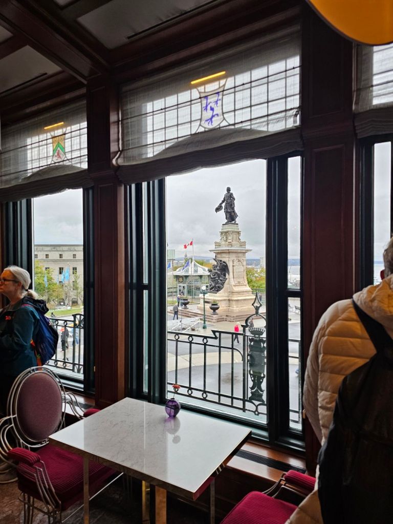It rained overnight but when I got off the ship twas just cloudy and cold. I walked to the Funicular to go to the Upper Town. I had booked a tour of the Frontenac Hotel through Viator. We met on the Boardwalk in front of the hotel. There were 2 guidesin period dress and they divided us into 2 groups of 14. I was in the group with the Count of Frontenac, Governor of New France in the 1600’s. We had a one hour tour of the hotel while learning about it’s history. It was a very interesting tour.