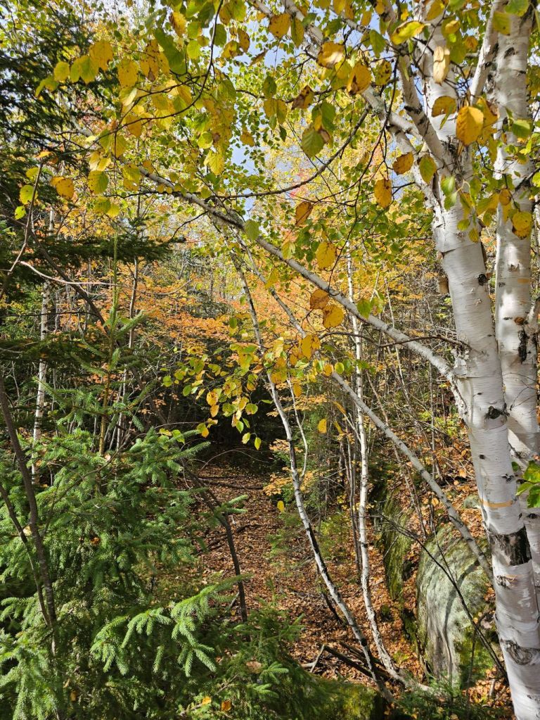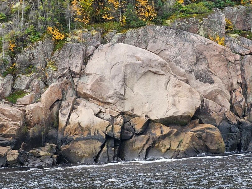 There were 44 of us on the ship. The temperature (Fahrenheit) was 45° when we took off and peaked at 53°. I sat on the upper outdoor deck while most stayed huddled inside. We had a guided pointing out the towns and other sights as we sailed. We saw miles of fall colors. There is a rock formation on the Fjord that looks like a Labrador Retriever.