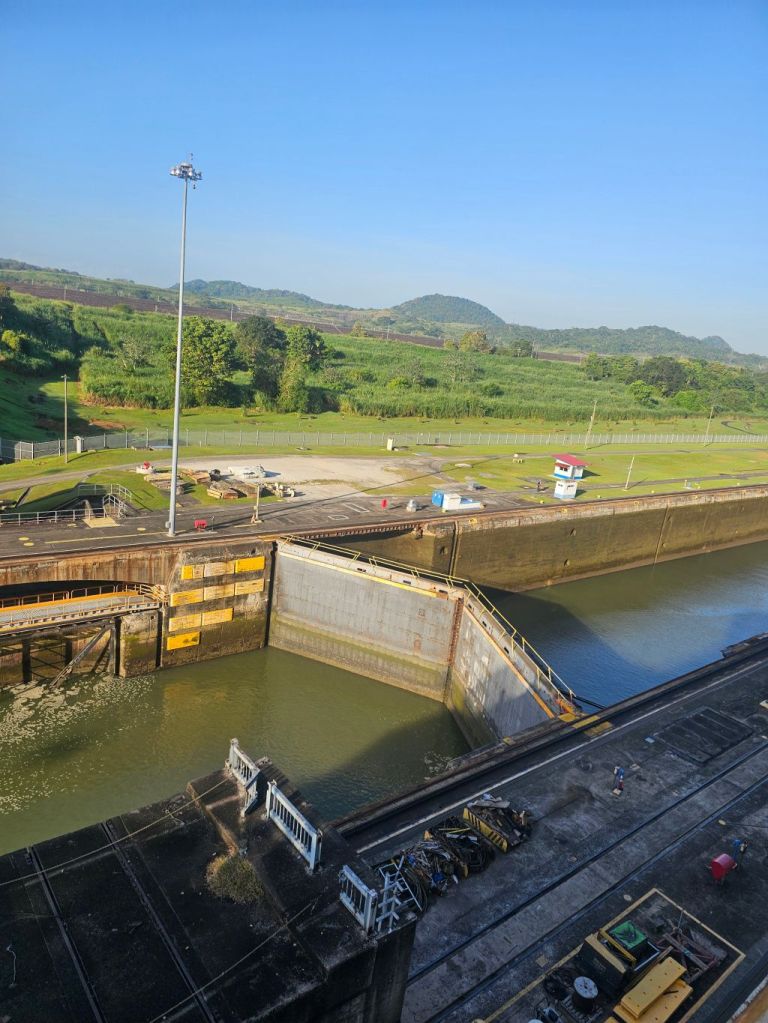 The day sailing through the Panama Canal was hot and humid. The ship’s announcements repeatedly told us to minimize time out on the open decks and to hydrate. I stayed outside to watch us enter the first lock but spent the rest of the day watching through windows. We entered the first lock at 730am and exited the Canal at 4pm.