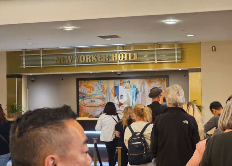 I took a train and 2 subways to get to the New Yorker Hotel. It is a wonderful art dedo building. At 4pm, we had an orientation meeting and met our group leader. There are 23 in our group. There are 2 Canadian women, one Australian, and the rest of us are from all over the U.S. We had dinner together and then had the evening to ourselves. Tomorrow we go to our first borough, Queens.