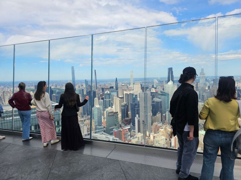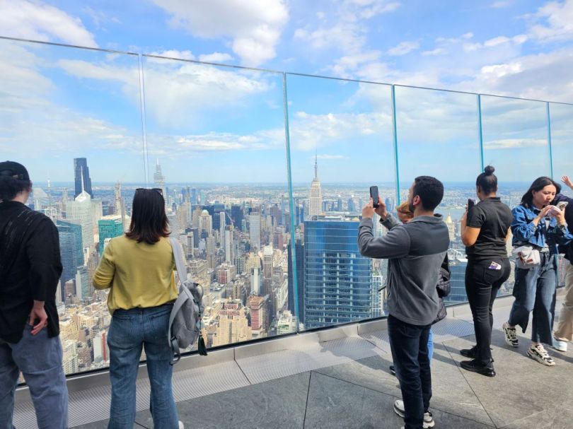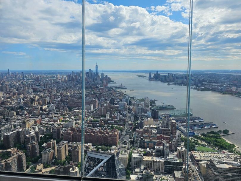 We took the 7 subway back to Manhattan. It is called the International Express. It took 40 minutes to take us to Hudson Yards. We took elevators to the 101st floor where an observation deck called “The Edge” juts out from the building. One section has a glass floor where you can look straight down to ground level. Great views of NYC from up there.