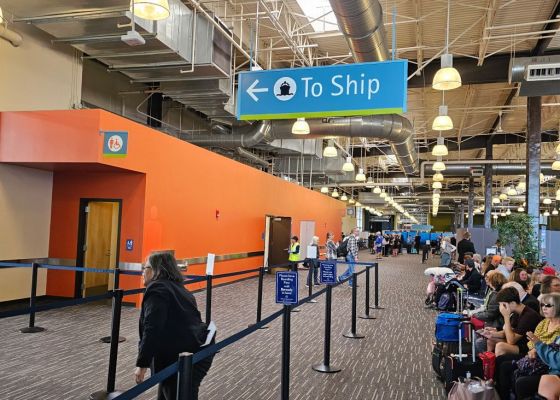 The ship docked at 7am. We were scheduled to be in port until 1230pm. It was pouring rain so we